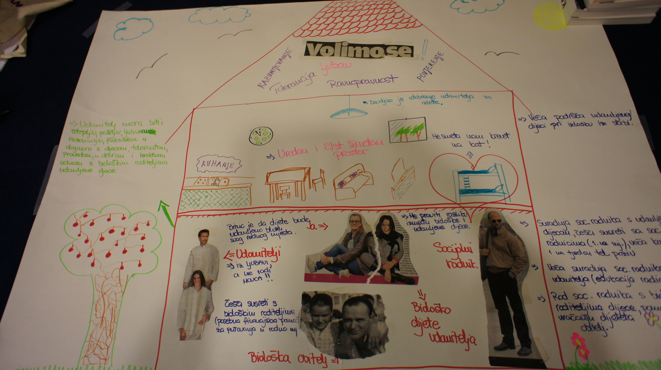 Mladi su nacrtali kućicu kao simbol zaštite, topline obiteljskog doma i bitnih stvari koje svako "kućanstvo", odnosno udomiteljstvo mora obuhvaćati: više posjeta socijalnih radnika (u početku jedan put tjedno,a kasnije jedan put mjesečno), veća angažiranost socijalnih radnika u pomoći biološkoj obitelji, više edukacija za udomitelje, da udomitelji ne rade razliku između biološke i udomljene djece, posebna financijska potpora za posjete biološkim roditeljima ukoliko je velika udaljenost smještaja, veća podrška udomljenoj djeci pri izlasku iz skrbi (stipendije)… A kao krov kućice, odnosno ono što bi trebalo biti iznad svega i obuhvaćati sve u kući istakli su ljubav, povjerenje, toleranciju, razumijevanje…